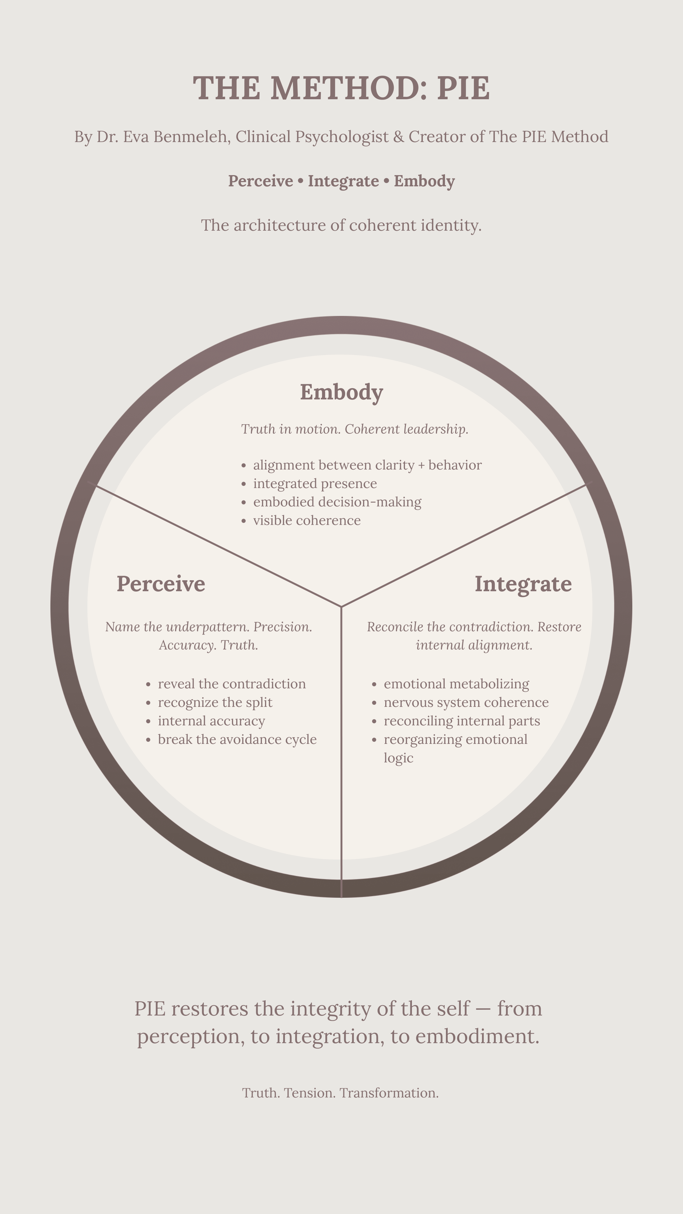 The PIE Method is the foundational framework informing the professional services and educational offerings of Dr. Eva Benmeleh.